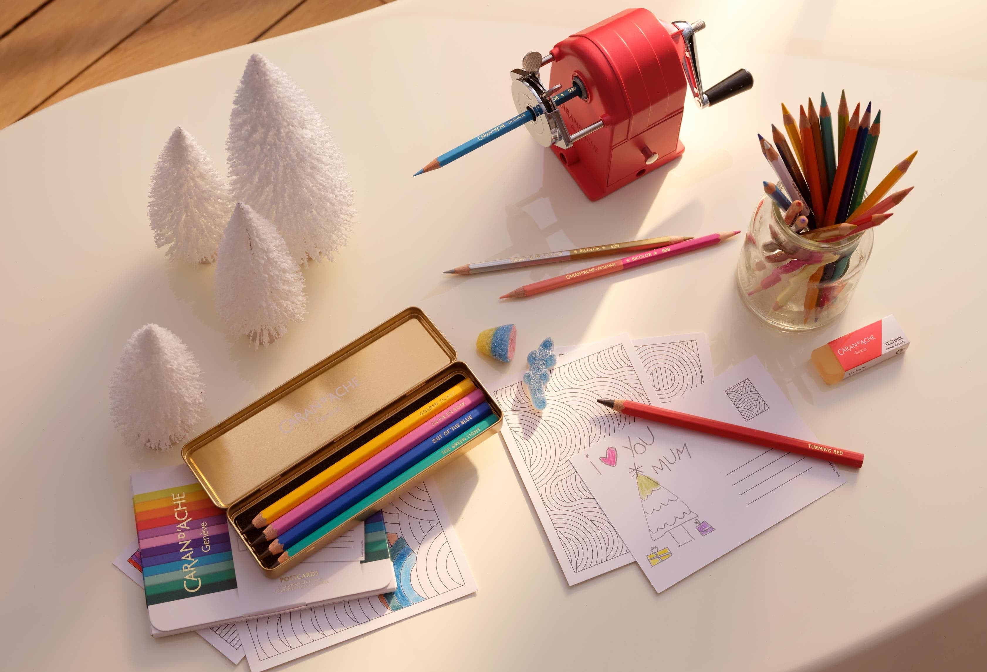 Personalisierter Füllfederhalter, Kugelschreiber oder Rollerball, Notizblöcke, Zeichenpapier, Filzstifte, Accessoires für kreative Hobbys, Material und Zubehör für Bildende Kunst... Caran d'Ache hat mehr als eine originelle Geschenkidee in seiner Palette, um die Wünsche Ihrer Lieben, Kinder wie Erwachsene, zu erfüllen. Brauchen Sie Inspiration für Ihre Weihnachtseinkäufe?