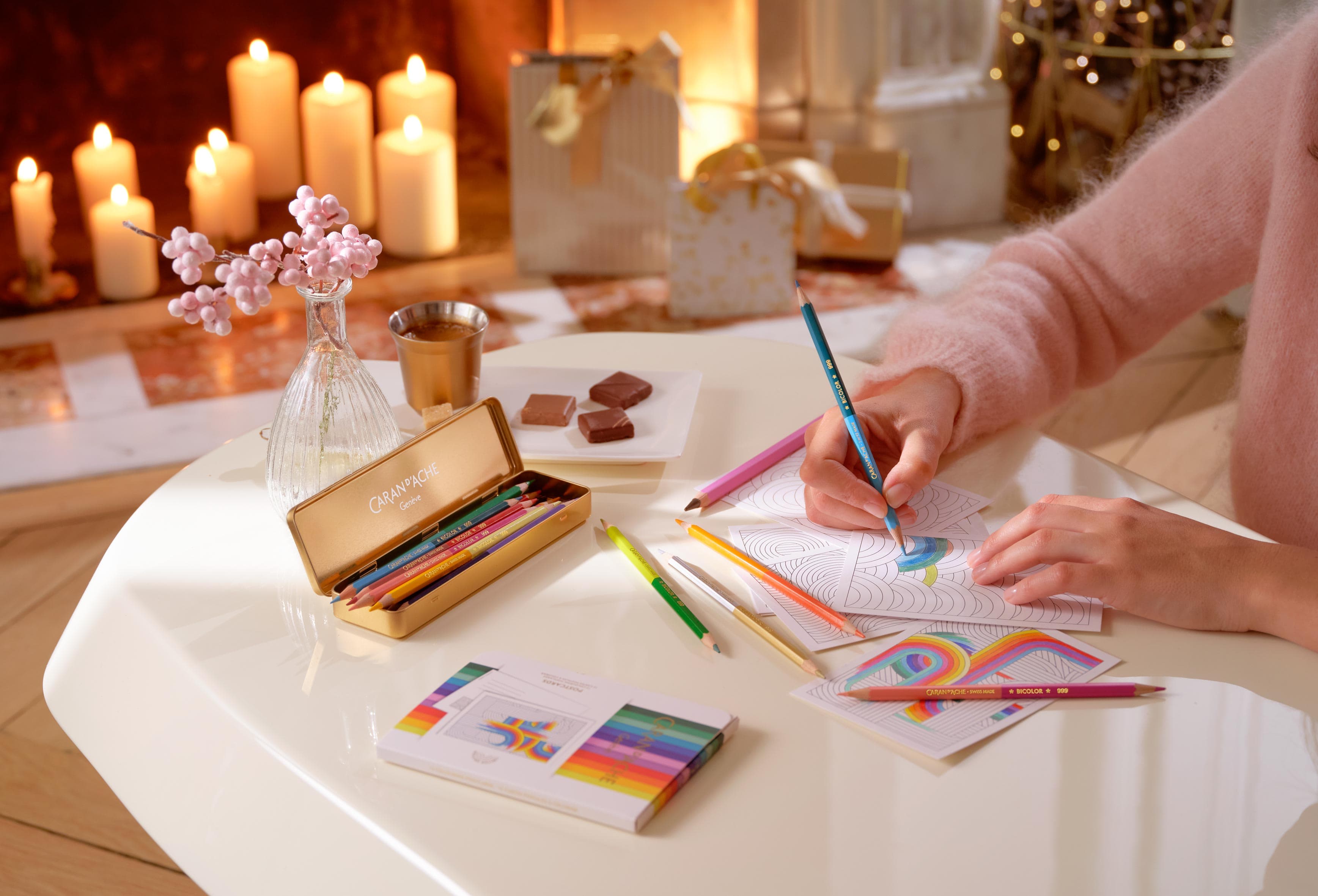Wie wäre es, wenn Sie 2022... Zeit schenken? Mehr als ein Weihnachtsgeschenk um sich dem Erlernen von Maltechniken zu widmen, ist eine Schachtel mit Buntstiften eine Einladung, sich Zeit für sich selbst zu nehmen. Dieser Aufruf zur Kreativität steht im Gegensatz zur Hektik des Alltags und lädt dazu ein, die Welt auf Pause zu stellen.