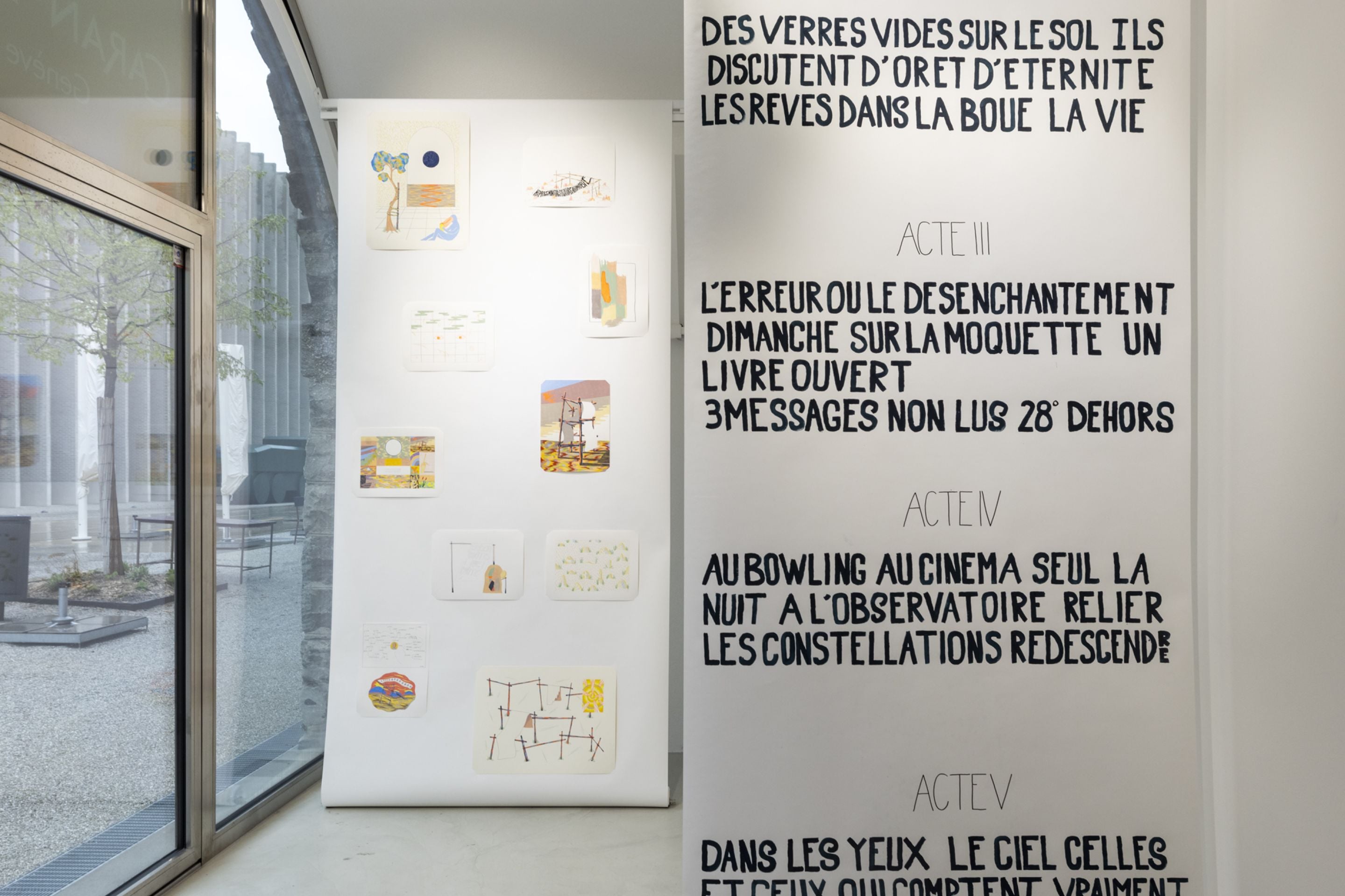 Im Rahmen des Projekts Le champ des possibles führen Jon Monnard und Mathias Forbach künstlerische Experimente durch. Nach vielen Überlegungen und Versuchen entstehen Werke, die Wörter und Zeichnungen verbinden.