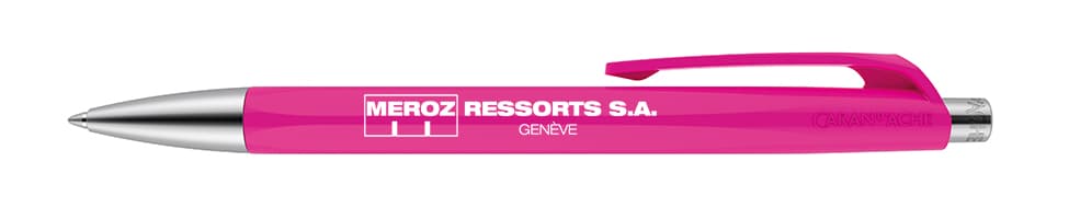 Plastique résistant et durable, pointe et bouton en métal. Fabriqué en Suisse dans les ateliers genevois de Caran d’Ache.