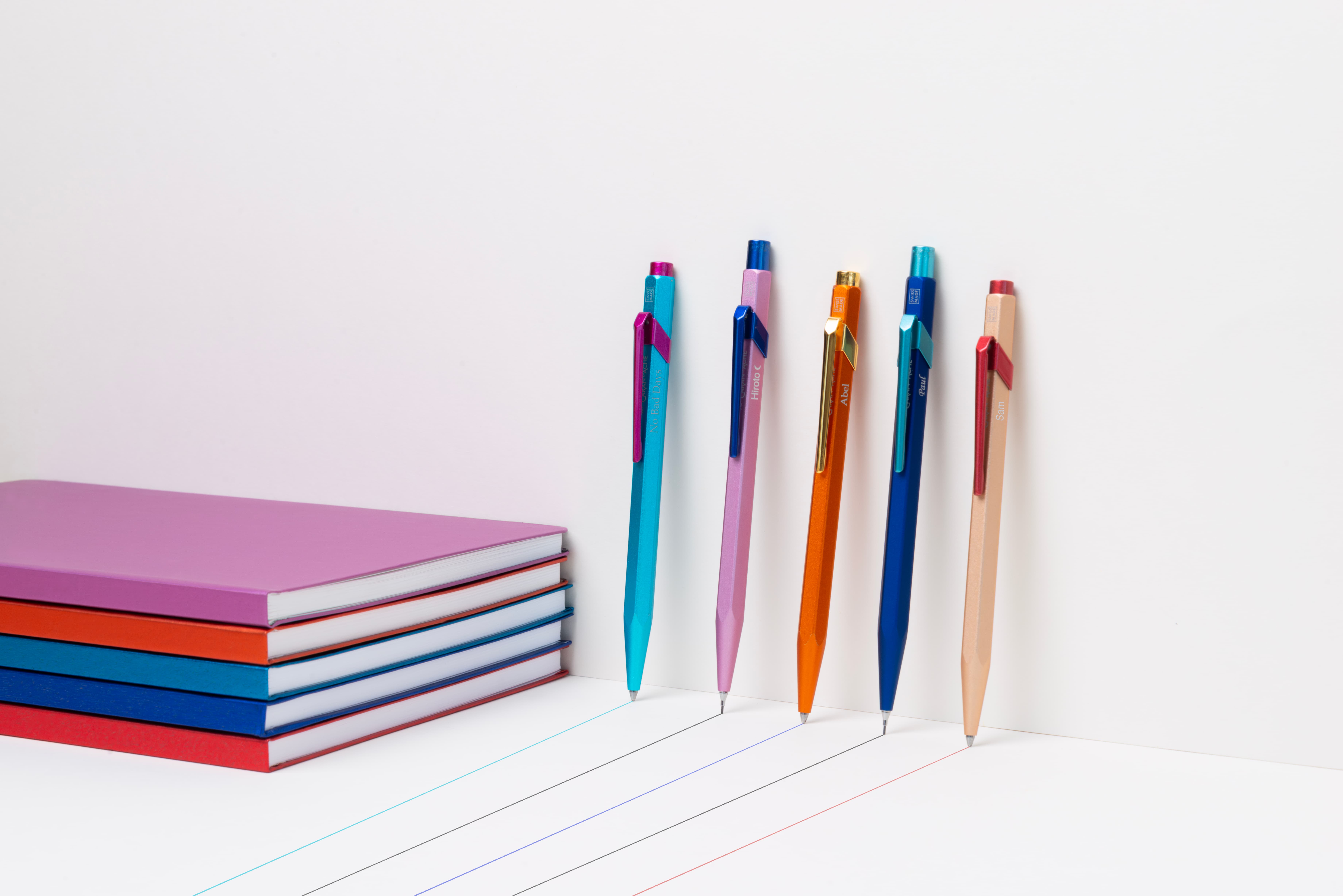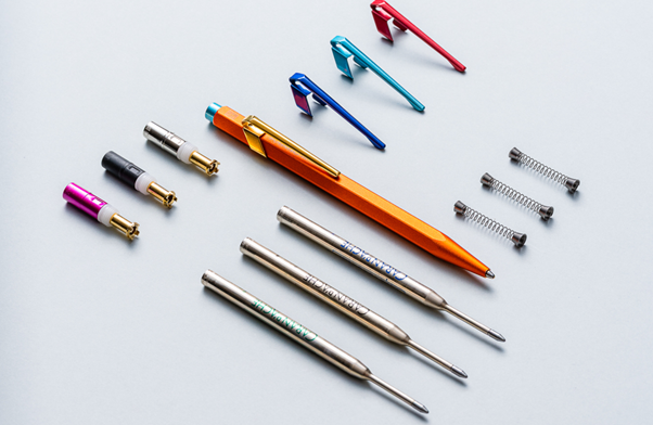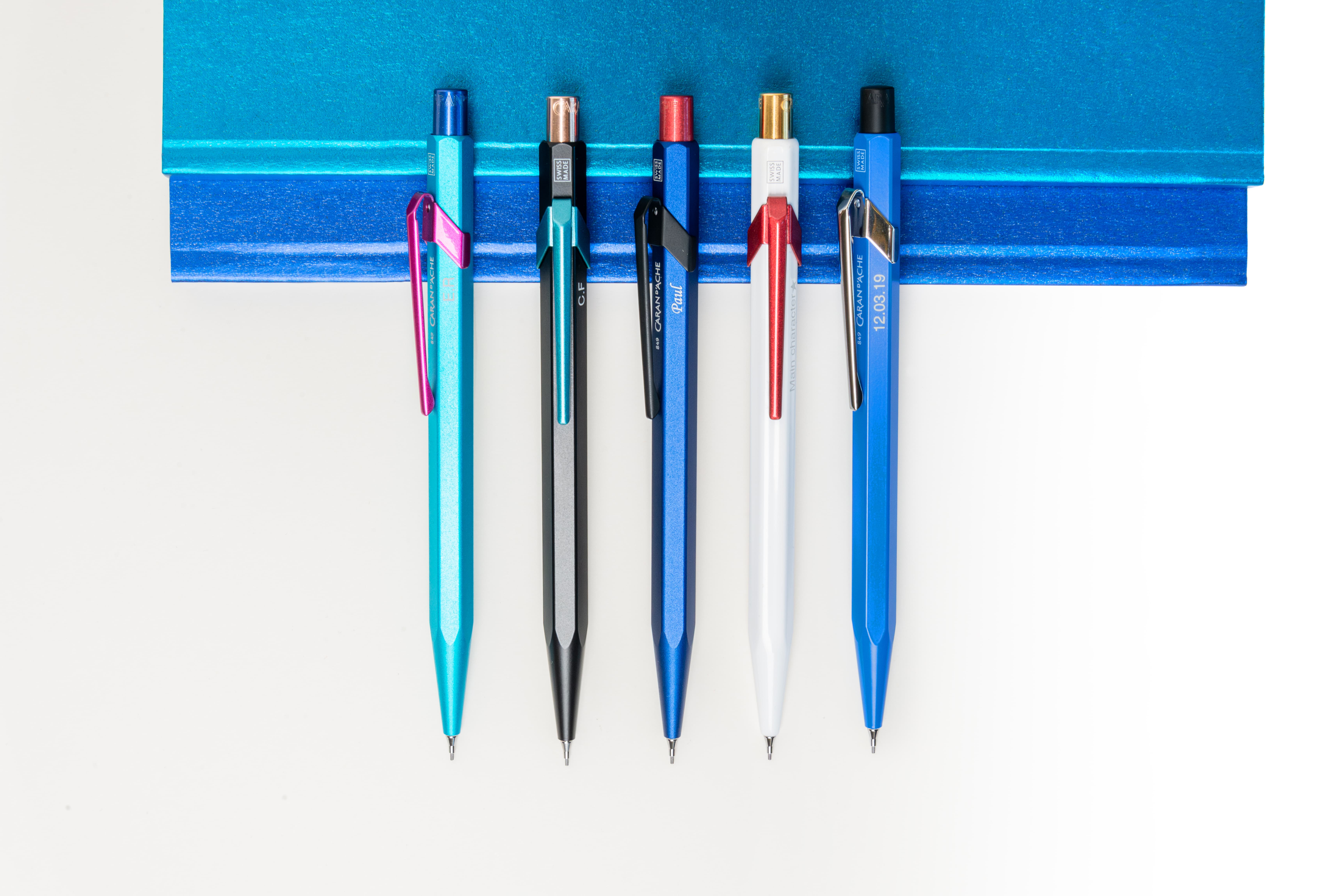 Personalize each part of your pencil with the Caran d’Ache + Me configurator. Select your colours and a finish (matte, satin, metallic or neon) for the body, clip and end cap, and add an personal engraving.