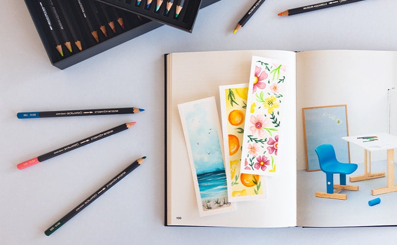 Three easy-to-make and colourful bookmarks with the Museum Aquarelle pencils