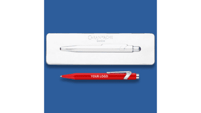 Un étui métallique ultra-plat blanc est disponible en option et peut être personnalisé avec votre logo en deux couleurs.