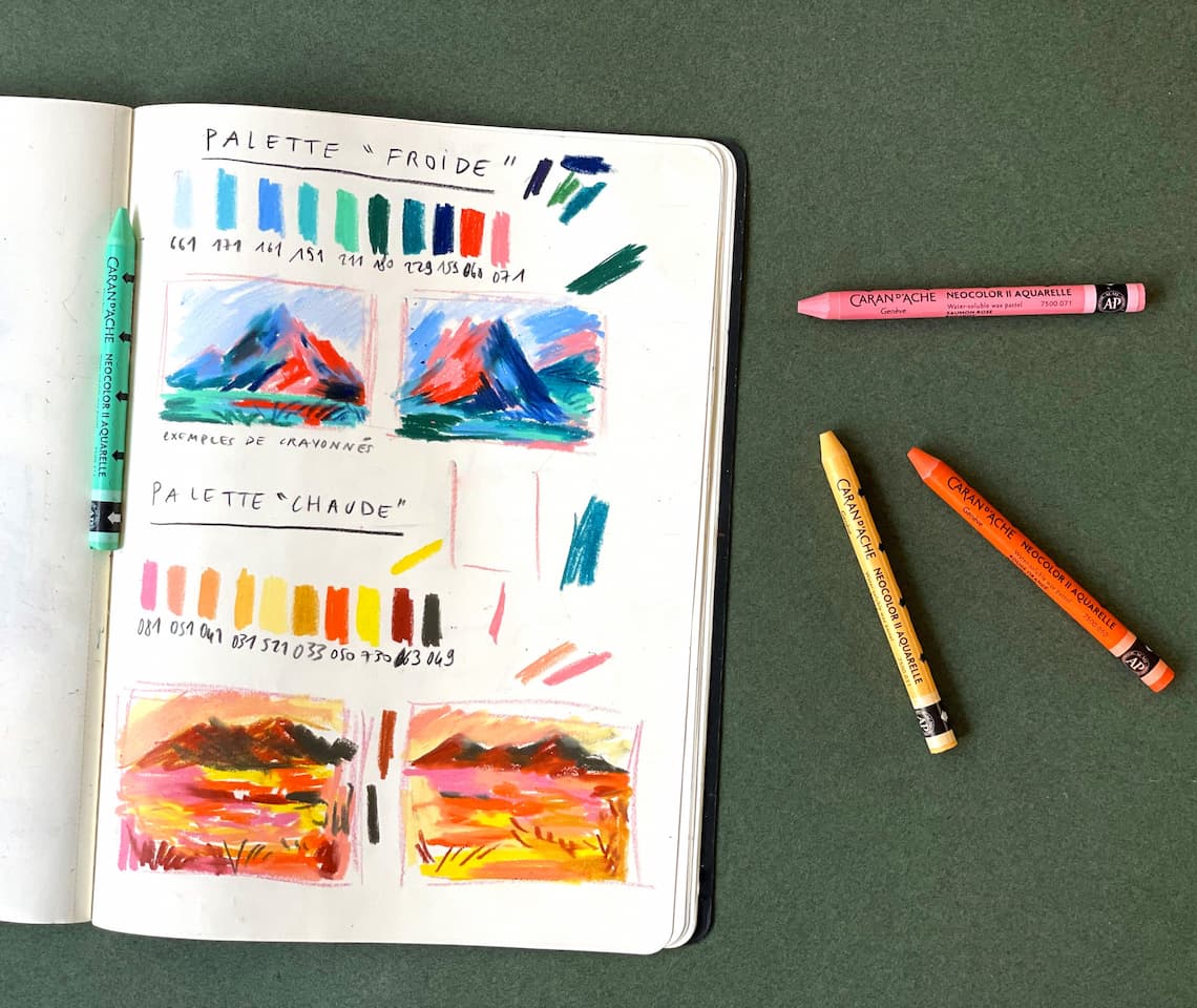 Pour Caran d’Ache, Beya Rebaï a imaginé deux assortiments inédits de Neocolor® II Aquarelle, composés des nuances de prédilection de l’artiste. L’un aux tons froids,jouant sur une variation de bleus, verts et roses. L’autre aux tons chauds, nuancier de jaunes, orangés et terre d’ombre. Ces deux palettes inspirantes offrent une multitude de possibilités créatives qui séduiront les artistes en herbe comme les plus confirmés.