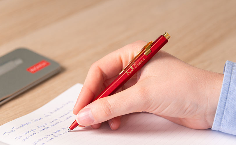 👉 Offrez à vos équipes des instruments inspirants aux couleurs de votre entreprise ! Caran d’Ache propose une gamme d’instruments haut de gammepersonnalisables, pensés pour conjuguer confort d’écriture et élégance. Découvrez notre configurateur de stylos d'entreprise en ligne.