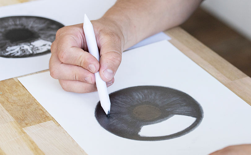 miteinander verschmelzen lassen, verbinden und intensiver gestalten. Im Gegensatz zum Papierwischer bewegt dieses Werkzeug nicht das Material (z. B. Grafit oder Farbpigmente): Es