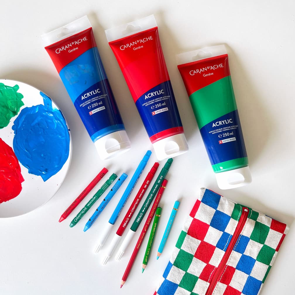 Der Sommer neigt sich dem Ende zu, aber dies hat auch etwas Gutes: Jetzt ist der perfekte Zeitpunkt, um die Schulsachen für das neue Schuljahr vorzubereiten! Die Federtasche ist jedes Jahr aufs Neue ein unverzichtbarer Begleiter im Schulalltag. Sie ermöglicht zum einen das Verstauen und Ordnen der Schreibgeräte Ihrer Kinder, Sie können sich aber auch ein eigenes kleines Federmäppchen zulegen, um es mit ins Büro zu nehmen. Heben Sie sich von der Masse ab, indem Sie ihm eine persönliche Note geben. Von Zeichnungen mit Farbstiften über das Aufsticken von Motiven bis hin zum Bemalen: Es gibt viele verschiedene Möglichkeiten, um eine Federtasche zu personalisieren. Das Gestalten von Schulsachen ist eine Tätigkeit, die sowohl Kindern als auch Erwachsenen großen Spaß bereitet. Sie wünschen sich ein außergewöhnliches DIY-Projekt? Dann ist das von der Künstlerin und Illustratorin Steffie Brocoli kreierte Modell mit einem dreifarbigen Schachbrettmuster genau das Richtige für Sie. Es wurde mit dem Material von Caran d’Ache und speziell für Ihre Kreationen entworfen.