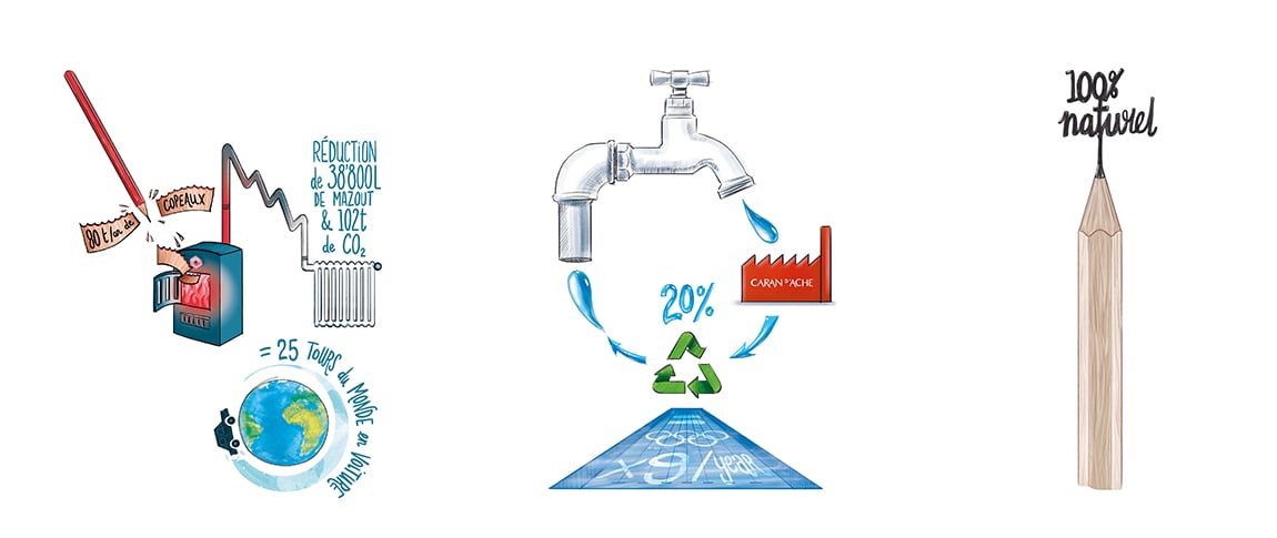 Caran d’Ache verdankt der Natur die Materialien und viele Geheimnisse seiner Produkte. Darum stehen bei jeder Tätigkeit des Maison Nachhaltigkeit und Naturschutz stets im Vordergrund. Die Folge sind konkrete Massnahmen zur Reduzierung des täglichen Umwelteinflusses der Produktion sowie zur Förderung eines verantwortungsvollen Konsums.