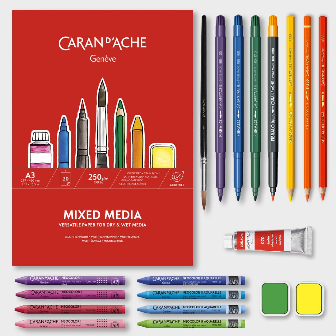 Entdecken Sie mit Caran d’Ache ein neues kreatives Universum und machen Sie sich mit der subtilen Kunst der Aquarellmalerei vertraut, indem Sie lernen, mit einem neuen Utensil umzugehen – den wasservermalbaren Stiften.