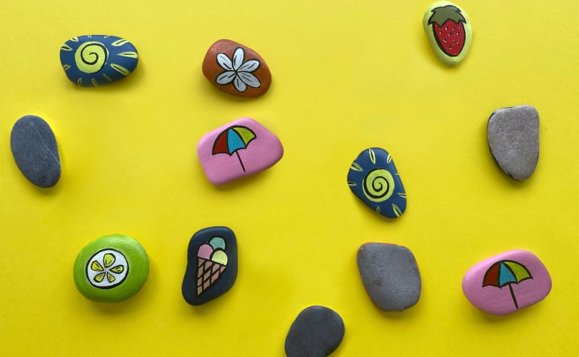 Pour vous inspirer, voici des exemples de dessins qui sentent bons l'été et que vous pourrez facilement reproduire sur des galets :