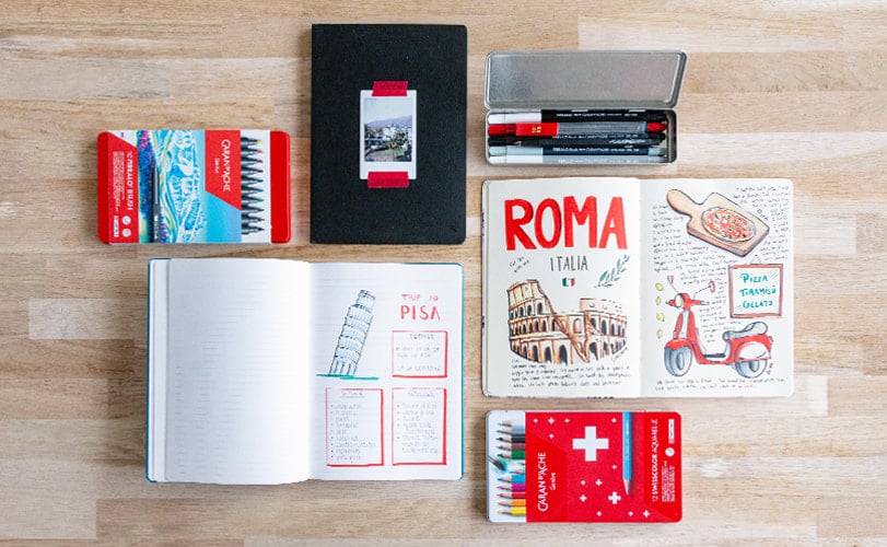 Vous êtes passionné de voyages et de DIY (Do It Yourself) ? Et si pour vos prochaines vacances, vous vous lanciez dans la création d’un carnet de voyage ? Bien plus qu’un album photos qui retrace votre séjour, un carnet de voyage vous permet de conserver vos souvenirs tout en le personnalisant pour le rendre unique, à l’image de votre voyage. Envie de laisser libre cours à votre créativité ? Caran d'Ache vous invite dans un voyage créatif pour apprendre, étape par étape, à créer votre carnet de voyage.