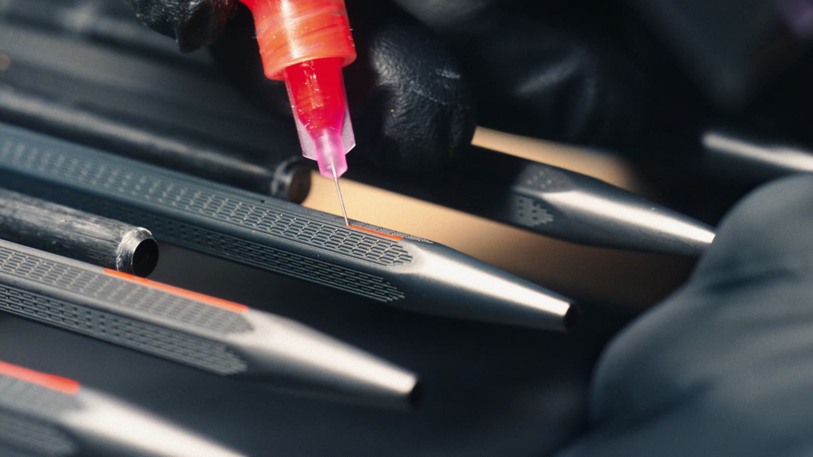 Les techniques de guillochages donnent vie à de subtils jeux d’ombres et de lumières sur le corps des instruments de Haute Écriture. Un guillochage au diamant apporte finesse et brillance au décor, tandis que le laser permet de graver des détails minutieux et offre un rendu moins profond, mais plus mat. Le burin et la fraise quant à eux creusent la matière en profondeur ; alors que le premier permet de réaliser des motifs longilignes et des angles saillants, la seconde grave des décors arrondis et complexes.