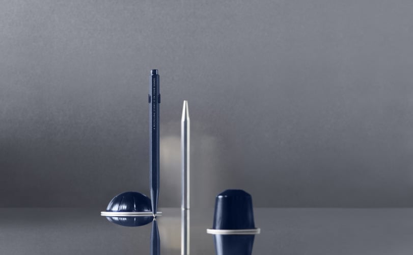 Pour cette 6ᵉ édition, Caran dʼAche et Nespresso misent sur un bleu nuit profond monochrome, qui incarne l'élégance intemporelle et le savoir-faire exceptionnelde la manufacture suisse, tout en rappelant subtilement la couleur de la capsule Kazaar. Le stylo bille 849 Caran dʼAche + Nespresso se pare d'une teinte métallisée, obtenue par un procédé de laquage enrichi de nacre, offrant une brillance supplémentaire à son design singulier.