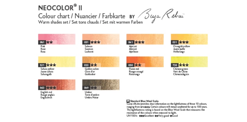 • Assortiment Neocolor® II Aquarelle Caran d’Ache + Beya Rebaï – tons chauds