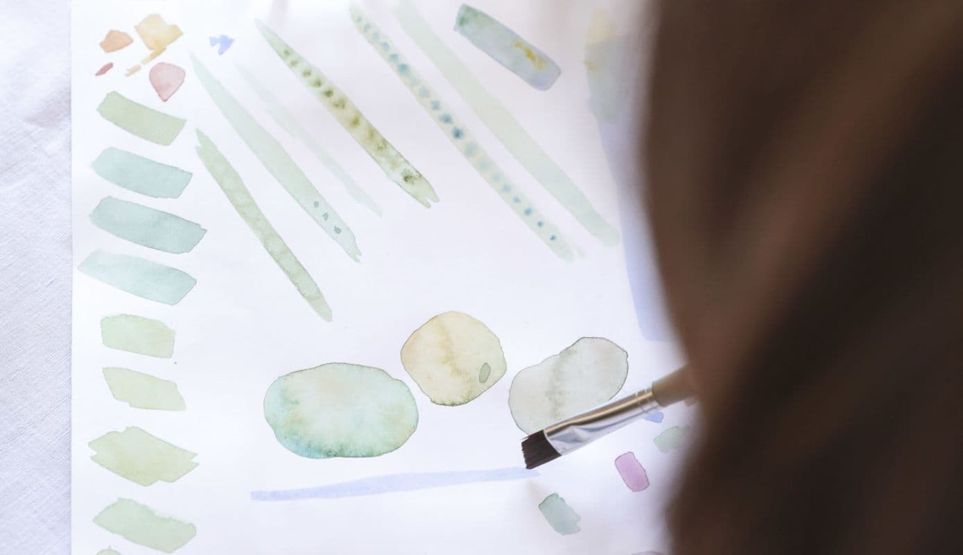 Prepare a little work station. You’ll need two pots of clean tap water for your watercolours and a few pieces of scrap paper to test colours on.