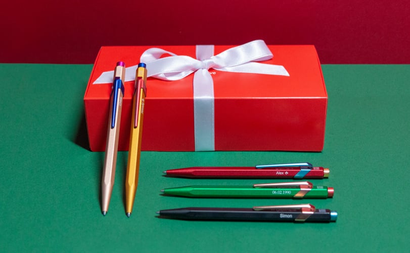 Per una penna personalizzata al 100 %, scopri il configuratore online Caran d’Ache + Me. Colore della penna, dell’inchiostro e incisione, crea una penna a sfera 849 che gli assomiglia e un regalo di Natale unico.