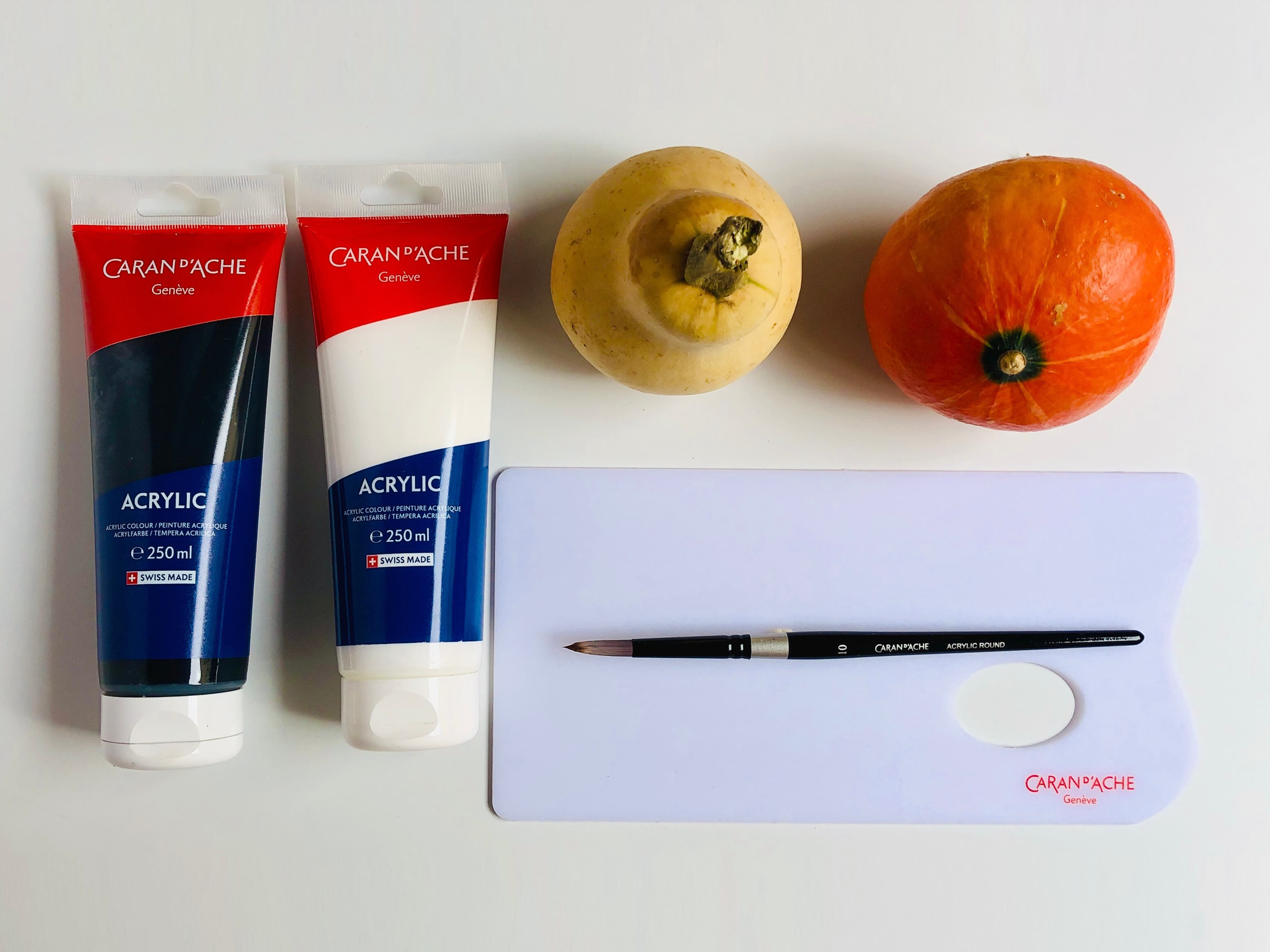 Informazione: l'incredibile potere coprente dell'acrilico lo rende la pittura ideale su qualsiasi supporto. A differenza del gouache, l'acrilico è indelebile e ti permetterà di posizionare le tue zucche in casa o all'esterno (ad esempio davanti alla porta). Tutto questo senza temere che le tue creazioni si rovinino!