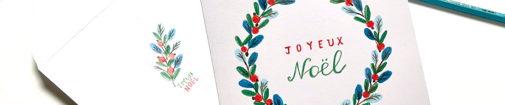 For my Christmas card, I decided to draw a wreath using the ‘Doodling’ technique – a method of drawing flowers that I explain in depth in my book “Doodling créatif” [Creative doodling]. They are simple, repetitive designs that look great and are easy to reproduce.