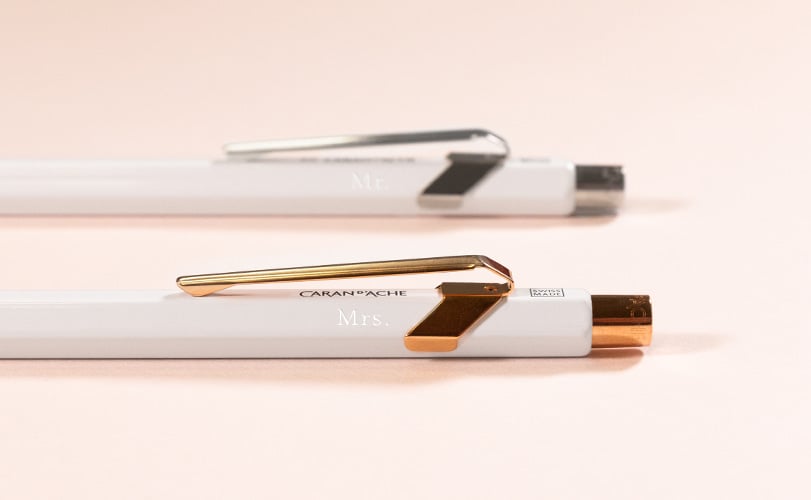 The special collection of fully customisable "Caran d'Ache + Me" 849™ ballpoint pens allows you to create a unique, personalised and made-to-measure pen for the newly-weds.